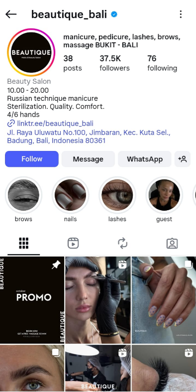BEAUTIQUE Nails & Beauty Salon — современный премиальный салон красоты на Бали, открытый в феврале 2025 года. Проект создан командой с международным опытом управления салонным бизнесом в Москве, Казани и Дубае. Салон сочетает высокие стандарты сервиса и стерилизации, современный интерьер и широкий спектр услуг. За первые месяцы работы удалось выстроить устойчивую клиентскую базу, внедрить CRM-систему и наладить активное продвижение в социальных сетях.